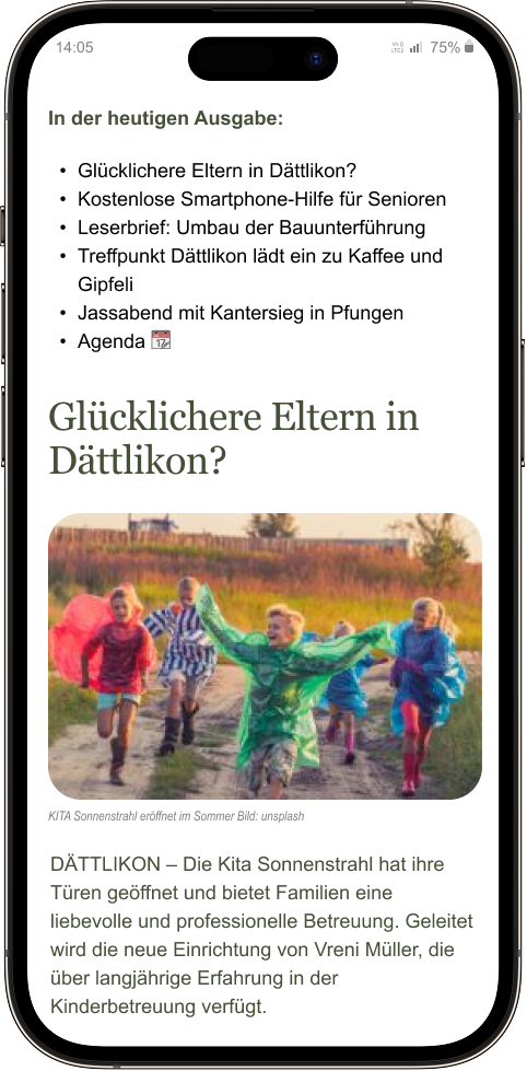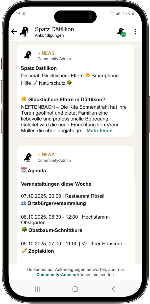 Wenn du Anliegen hast, melde dich: daettlikon@spatz.news