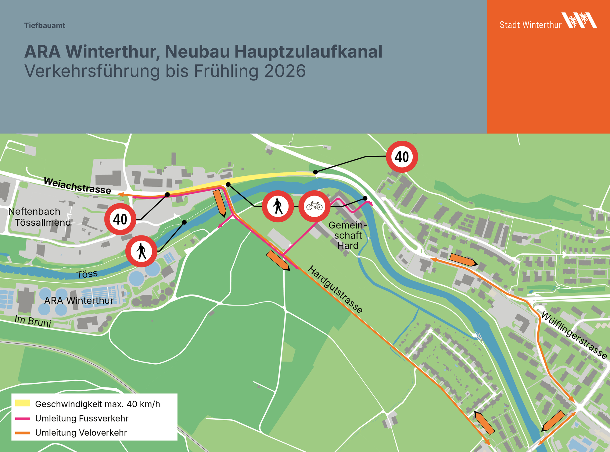 Die Baustelle zwischen ARA und Hardau im Überblick. Grafik: Stadt Winterthur