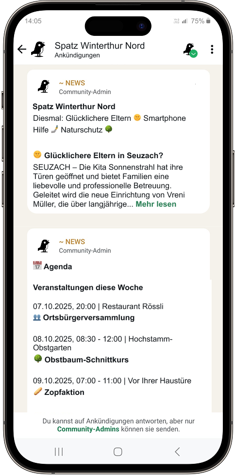 Wenn du Anliegen hast, melde dich: winterthur-nord@spatz.news